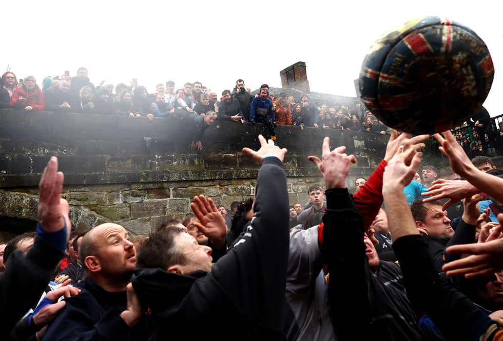 The match, played annually since at least 1667, is battled across streets, bridges, fields, woods and people's back gardens